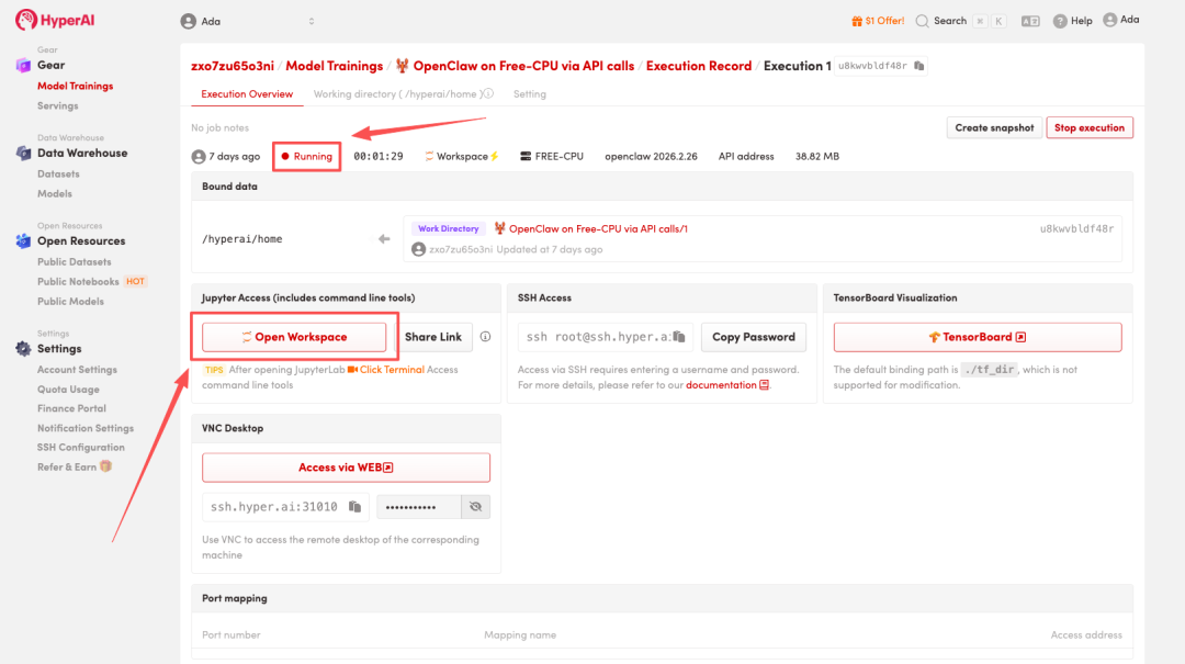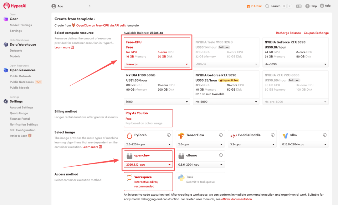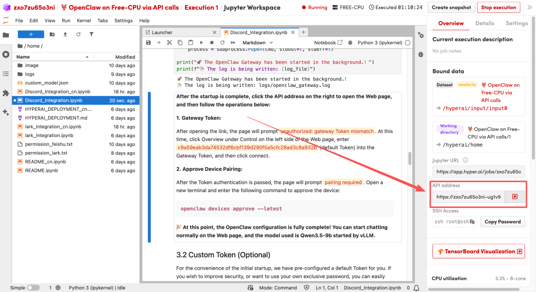 🦞 OpenClaw:使用 Free-CPU 调用 API 运行 https://go.hyper.ai/Qg72T
