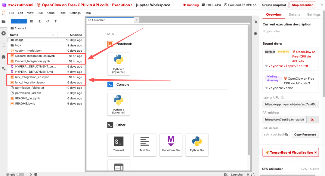 为了便于开发者体验 OpenClaw 在实际应用场景中的能力,HyperAI 上线了「🦞 OpenClaw:使用 Free-CPU 调用 API 运行」与「🦞 OpenClaw 的 GPU 运行教程」,将 OpenClaw 集成到各种社交应用中,实现丰富的自动化任务。包含: