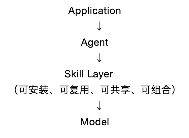 CLI和Python API,本质上都是这套结构的不同入口。 工作流程很清晰:安装Skill→从共享池里挑出某个Agent需要的子集 → 同步到AGENTS.md或作为工具能力暴露出去。 如果是这样,未来的AI软件架构可能会变成这样  这个思路的价值在于:它把Skill从一次性的项目实现,变成了可以长期维护和复用的工程对象。 现在关注MagicSkills的价值在于,它正解决越来越多团队会遇到的现实问题:Agent数量越来越多,Skill越来越多,接入方式复杂,但能力管理仍停留在复制、粘贴、手动整理阶段。 MagicSkills提供的共享体系,把Skill统一放进一个共享体系里,再按不同Agent去组合和暴露。 - 如果某个Agent读取AGENTS.md,走同步路线